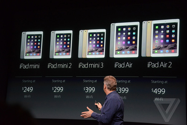 iPad mini-iPad mini 2-iPad mini 3-iPad Air-iPad Air 2,价格则跨度从1798元至4988元不等,如此长的产品线让用户的选择空间非常之大,其背后的诉求一定是更大范围地覆盖用户群,最大限度地利用现有产品,实现最大的销售收益。