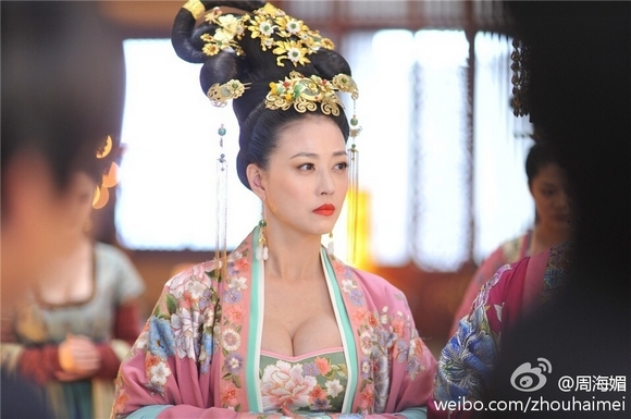 早年曾参加港姐选举的周海媚,自然有一副好身材,出道以来,《武媚娘传奇》中的挤胸戏服,堪称是她从演以来的较大尺度了。对于外界质疑,《武媚娘》到处晒胸的质疑,范冰冰曾回应说:「低不低胸,要看每个人的身体结构。身体结构比较好的呢,就露」。