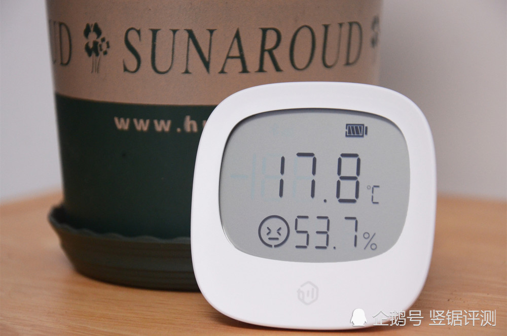 温湿度传感器的屏幕主要显示了电量、当前环境温度及湿度,同时对于当前环境的评价还用了一个表情提示,挺有意思的。