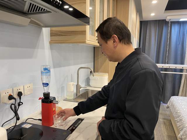 中国盲协副主席兼秘书长何川也是一名视障人士,他正在语音操控智能饮水机,只需要说一句“天猫精灵,打开厨房的饮水机,并倒‘55度’的‘小杯水’”,适度适量的温水即出。何川说,遥控器和控制面板对我们来说太难了,这样的语音控制智能家居体验,对视障人士太需要了。