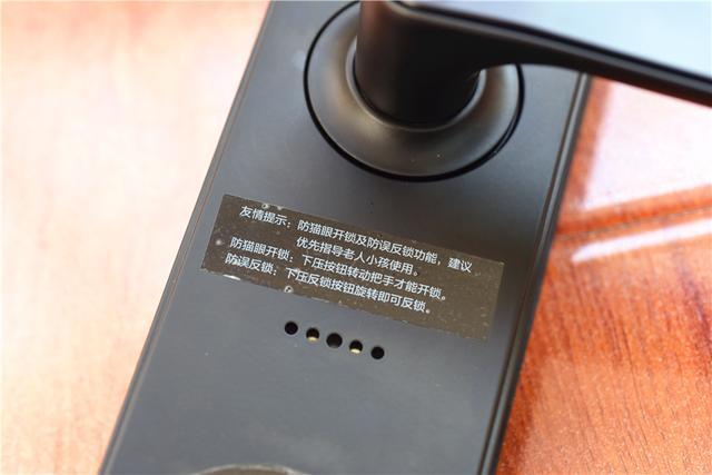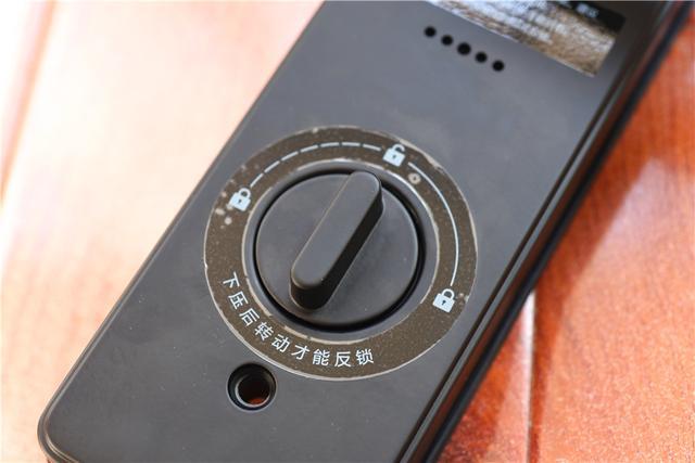 把手下方是一个音量孔,再往下是一个圆形的反锁按键,也加入了防止误开的功能,原理同手柄一样,也是需要按压才能转动。