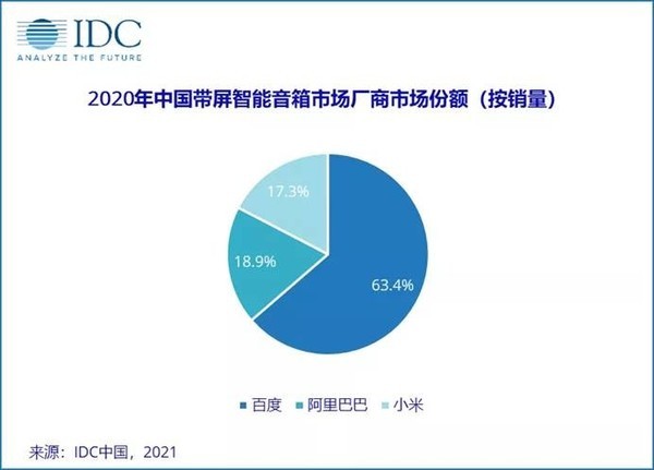 据了解,在带屏智能音箱市场上,百度以63.4%的市场份额保持领先。带屏音箱上的先发优势及不断升级的交互体验为小度在家系列音箱积累了良好的口碑;2020年其带屏产品矩阵进一步完善,且渠道渗透力不断提升。