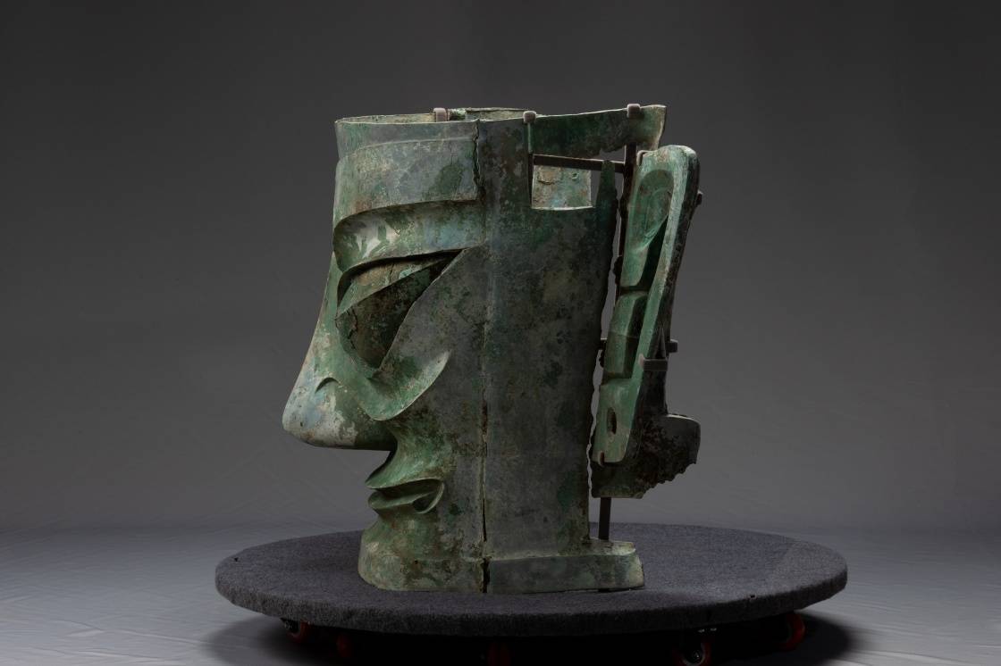 这是修复完成的青铜大面具侧面(资料图片)。新华社 图