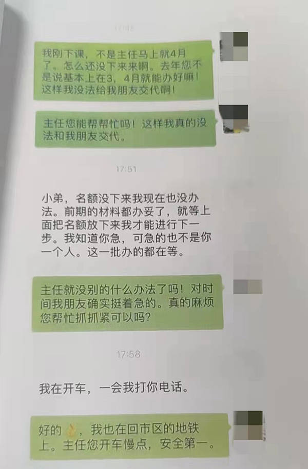 一年过去了,郭小姐和王先生询问贺某户口办理情况,贺某把与“大哥”的聊天记录发给两人,称正在走流程,只要耐心等他消息就行。随后,每隔一段时间,贺某都会以各种理由搪塞一下两人。直到2021年底,在两人的再三逼问下,贺某不得不承认户口办不下来,并偿还了45万元定金。随后贺某便失联了。