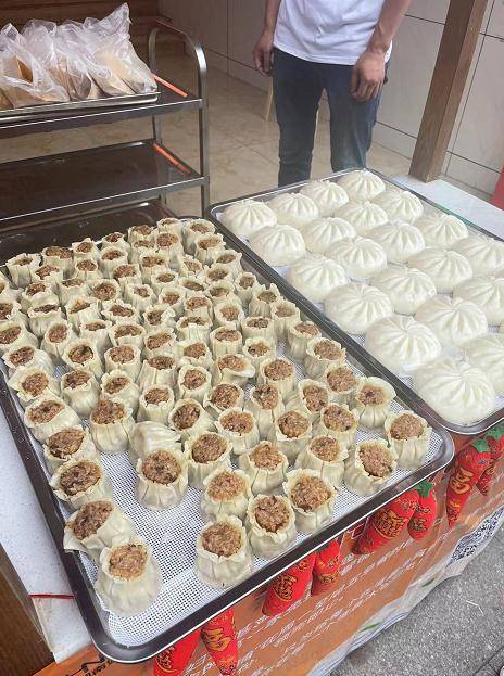 早餐铺周一至周五早餐时段(8点-9点半)将提供免费早点,门店运营主管彭鹏介绍,早餐铺每天供应的种类都不同,“有常见一点的烧麦、盐菜包、芝麻饼,还有一般早餐店比较少的红枣酸奶包、马蹄包、儿时味发粑粑等,一周5天都不重样。”每年预计花费15万元左右。