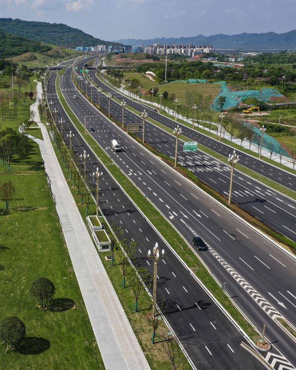 位于西部(重庆)科学城核心区的科学大道一期工程南起于狮子口立交,北止于中柱立交,沿线10.5千米,是重庆市重点项目工程。其中,高龙大道至魏家院三公里示范段已于今年3月份正式通车,工程全线计划将于2022年下半年建成通车。