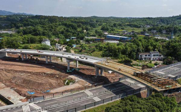 这是5月2日拍摄的重庆科学大道一期工程青龙咀立交桥项目施工作业现场(无人机照片)。新华社记者王全超摄