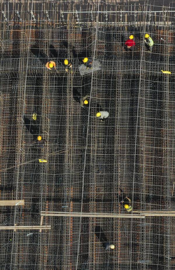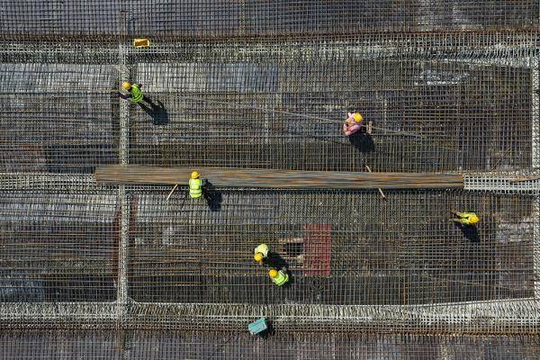 这是5月2日拍摄的重庆科学大道一期工程狮子口立交西辅道连续梁项目施工作业现场(无人机照片)。新华社记者王全超摄