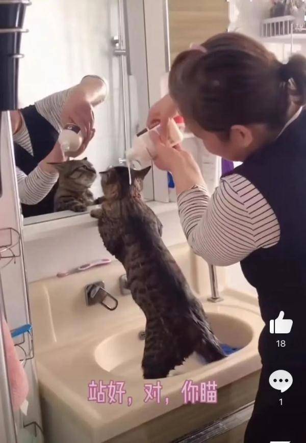 等姥姥擦沐浴露的小猫 | 图源:微博视频截图