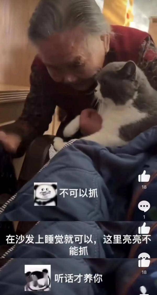 这可真是“自己养猫鸡飞狗跳,老人养猫岁月静好”。