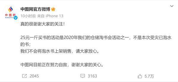 中图网在微博发布最新回应表示