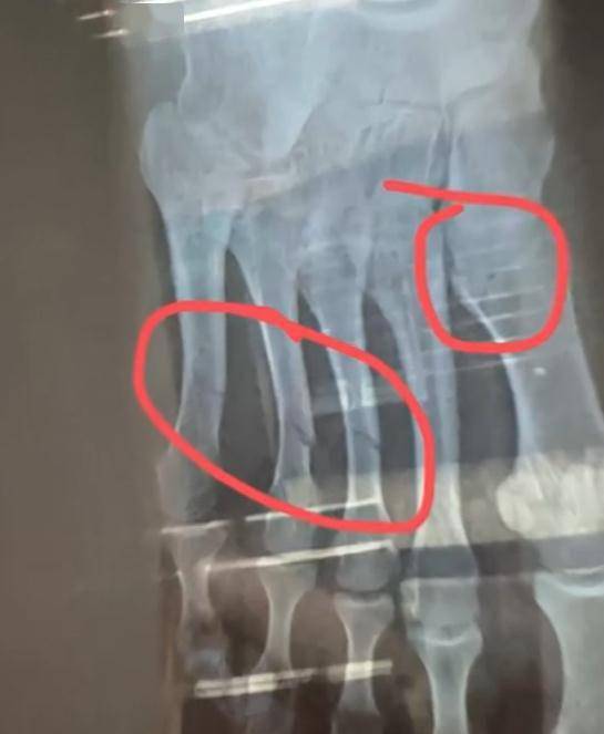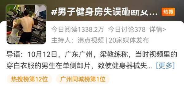 健身房工作人员梁教练称,当时视频中的白衣男生正在单侧卸片,致使健身器械失衡侧翻,砸中一旁的女生。女孩被砸中了脖子胸和腰部等位置,随后被送去就医。在经过CT等全身检查后,发现她脚趾断了4根。