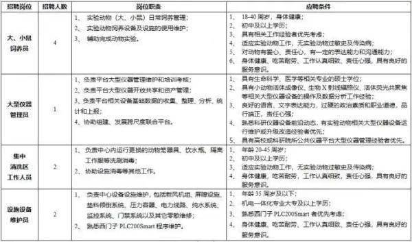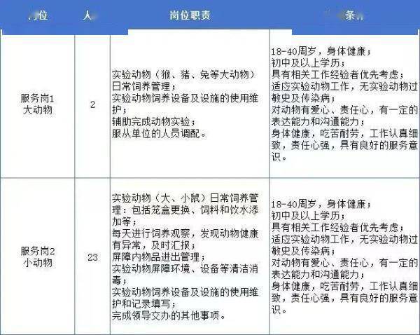 记者看了下招聘信息,发现有两个岗位招聘“饲养员”,除了饲养小白鼠还有猴、猪、兔等大动物——