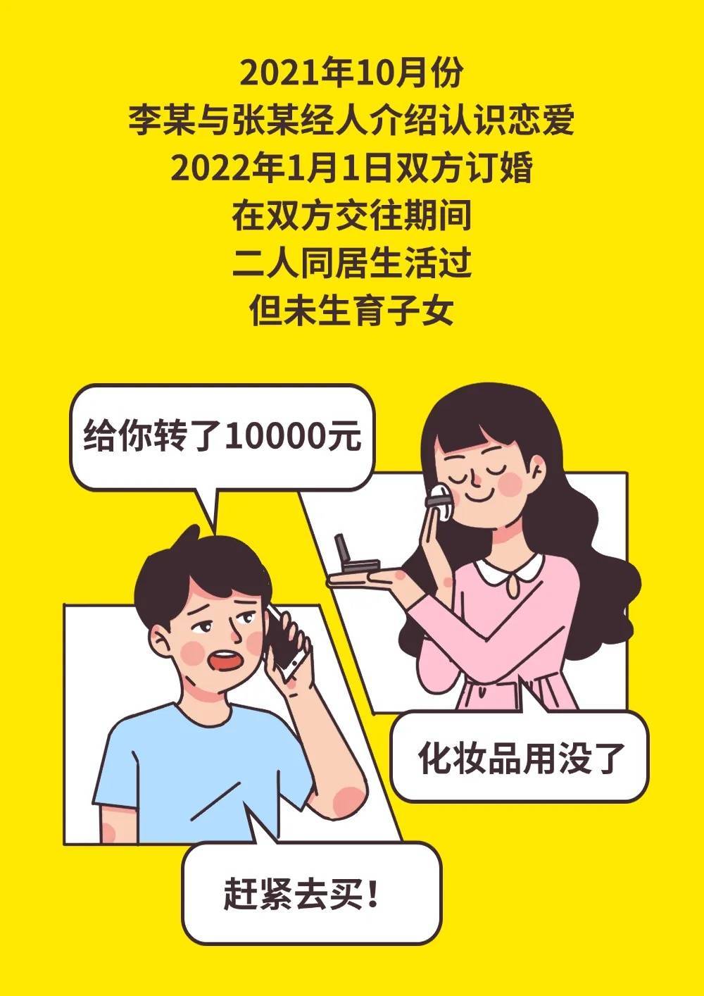2021年10月份,李某与张某经人介绍认识恋爱,2022年1月1日双方订婚。在双方交往期间,二人同居生活过,但未生育子女。