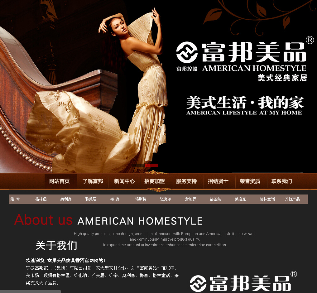 宁波富邦家具有限公司是一家大型家具企业,以"富邦美品"雄居中、美市场,现在国内成功运营维帝、格林堡、奥利赛、雅美居、梅赛、玛斯特、迈克尔、费加罗、洛基纳、莱洛克十 大品牌。公司是中国500强企业——富邦控股集团(下辖:沪市A股上市公司、富邦矿业、富邦地产、富邦酒店、双鹿电池、埃美柯、新乐电器、"八一"男篮俱 乐部等著名企业)的全资公司,公司本部坐落于宁波经济技术开发区,是一家集研发、设计、制造、物流、营销、品牌运行、售后服务为一体的集团型企业。
